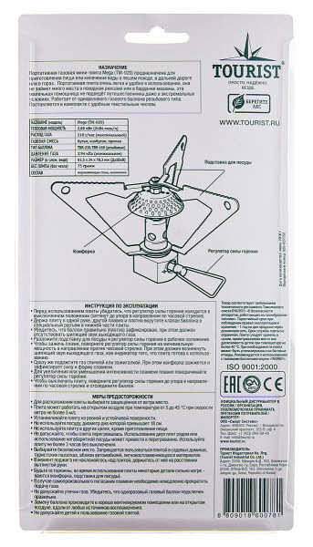 Разработанная и изготовленная в Южной Корее портативная газовая мини-плита Mega (TM-020) предназначена для приготовления пищи или кипячения воды в пешем походе, в дальней дороге или в горах. Эта маленькая помощница не подведёт путешественника даже в самых экстремальных условиях. Применение титана и лёгкого алюминиевого сплава обеспечивает минимальный вес, высокую надёжность и антикоррозионные свойства. Это одна из самых лёгких газовых плит в мире. Работает от одноразового баллона резьбового типа. Транспортировка и хранение осуществляется в удобном текстильном чехле.