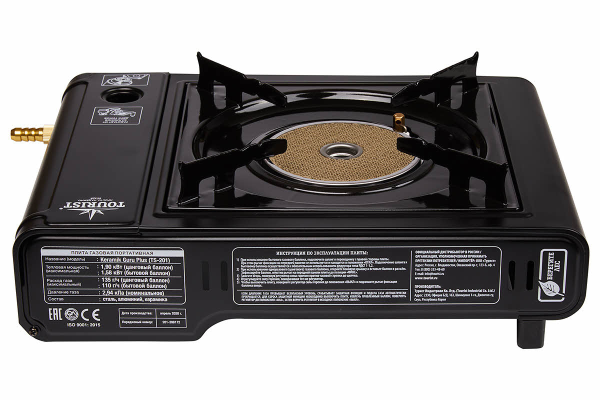 В некоторых моделях газовых обогревателей и плит марки «Tourist» используется уникальный микропористый керамический излучатель. К основным преимуществам керамики можно отнести более эффективную генерацию и распределение тепла за счет полного сгорания газовой смеси, отсутствие открытого пламени, что повышает безопасность прибора и препятствует задуванию пламени ветром во время работы, а также существенное снижение расхода газовой смеси.
