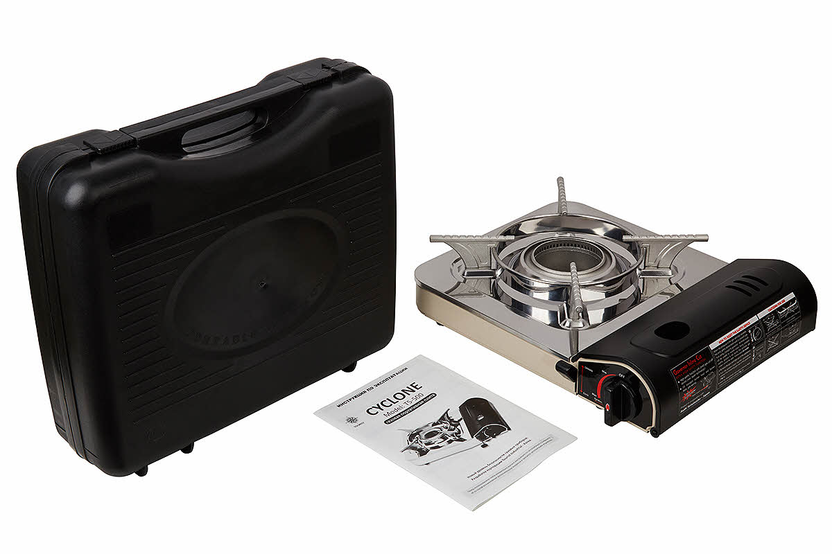 Одна из самых мощных плит в линейке. Конфорка имеет уникальную конструкцию, и, завихряя пламя подобно циклону, обеспечивает рекордно быстрое время закипания воды. Плита покрыта специальной эмалью, придающей прибору элегантный вид и особенную долговечность. Работает от стандартного одноразового газового баллона, который размещается внутри плиты. Транспортировка и переноска осуществляется в удобном пластиковом кейсе.