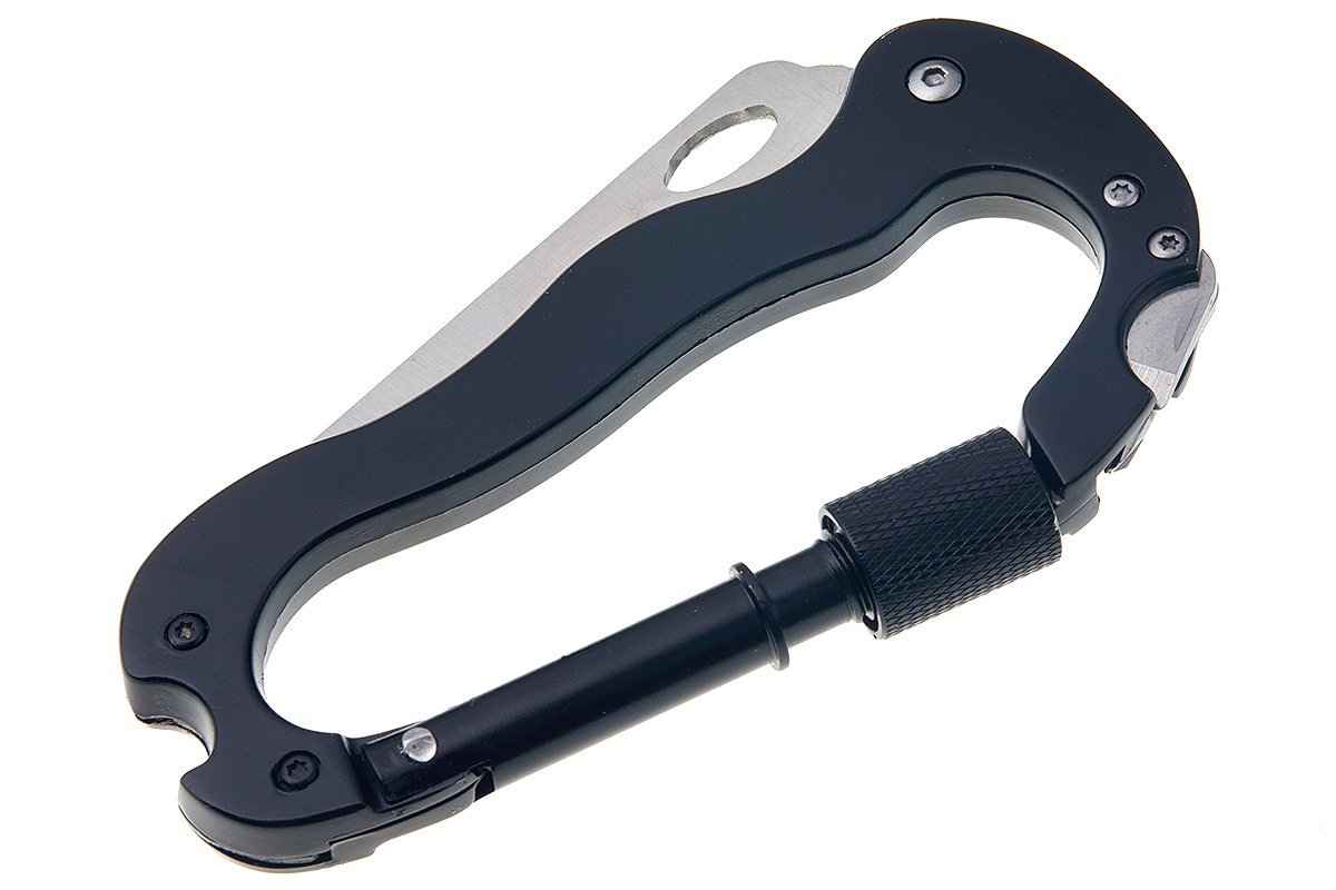 Походный карабин-мультитул торговой марки «Дружба» (ДМ-380) – это незаменимый атрибут для всех любителей активного отдыха на природе. Он представляет собой многофункциональное устройство 5 в 1, сочетающее в себе нож, карабин, отвертку с плоским и крестообразным шлицом и открывашку для бутылок. Лезвие ножа изготовлено из нержавеющей стали и заточено с обеих сторон. На лезвии имеется специальный серрейтор для быстрой очистки чешуи. Мультитул удобно крепится карабином к снаряжению, чтобы быть всегда под рукой. Карабин не предназначен для скалолазания и крепления тяжелых грузов!