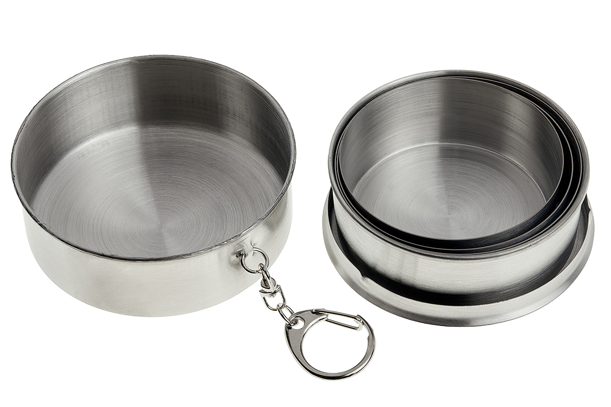Легкий и компактный складной стакан торговой марки «Дружба» (ДК-557) предназначен для употребления холодных и горячих напитков в походе, в поездке, на пикнике. Благодаря складной конструкции стакан превращается в небольшой стальной коробок, который удобно положить в рюкзак, бардачок или даже в карман. Стакан изготовлен из высококачественной пищевой нержавеющей стали, имеет малый вес и высокую прочность, легко моется, не выделяет токсичных веществ. Оснащен кольцом-карабином для переноски и хранения.