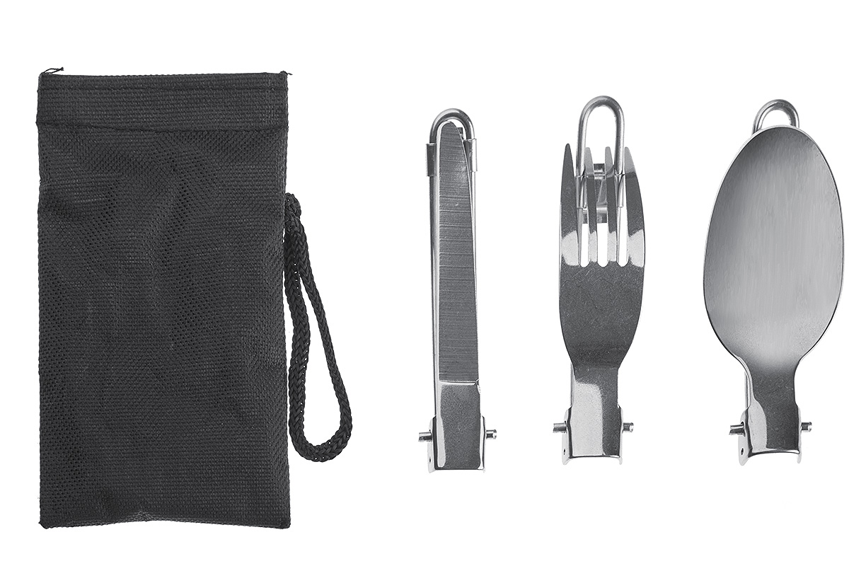 Набор столовых приборов торговой марки «Дружба» (ДК-580) предназначен для использования в походах, на пикниках и в поездках. Набор состоит из трех предметов – ножа, вилки и ложки, которые удобно и компактно складываются и практически не занимают место в рюкзаке, дорожной сумке или бардачке автомобиля. Приборы выполнены из высококачественной нержавеющей стали, благодаря чему легко моются и не окисляются. Для хранения и переноски предусмотрен специальный чехол на липучке, который защищает приборы от загрязнения.