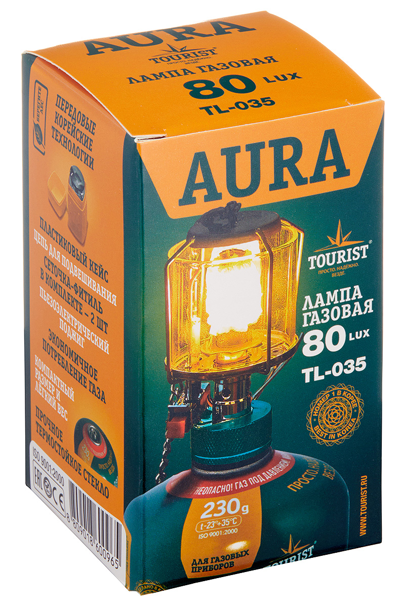 Лампа газовая Aura (TL-035) предназначена для освещения окружающего пространства на пикнике, в походе, на дачном участке, в дальней дороге и просто во время отдыха на природе. Для удобства эксплуатации оснащена цепью для подвешивания. Лампа работает от стандартного одноразового газового баллона резьбового типа, который легко подсоединяется к лампе. Транспортировка и хранение лампы осуществляется в удобном пластиковом кейсе.