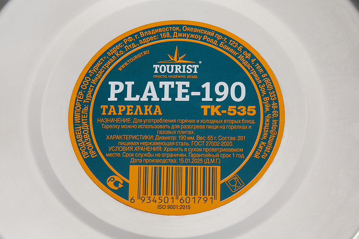Тарелка изготовлена из высококачественной пищевой нержавеющей стали и предназначена для употребления холодных и горячих вторых блюд, имеет малый вес и высокую прочность, легко моется, не выделяет токсичных веществ. Тарелку можно использовать для разогрева пищи на туристических горелках или плитах.
