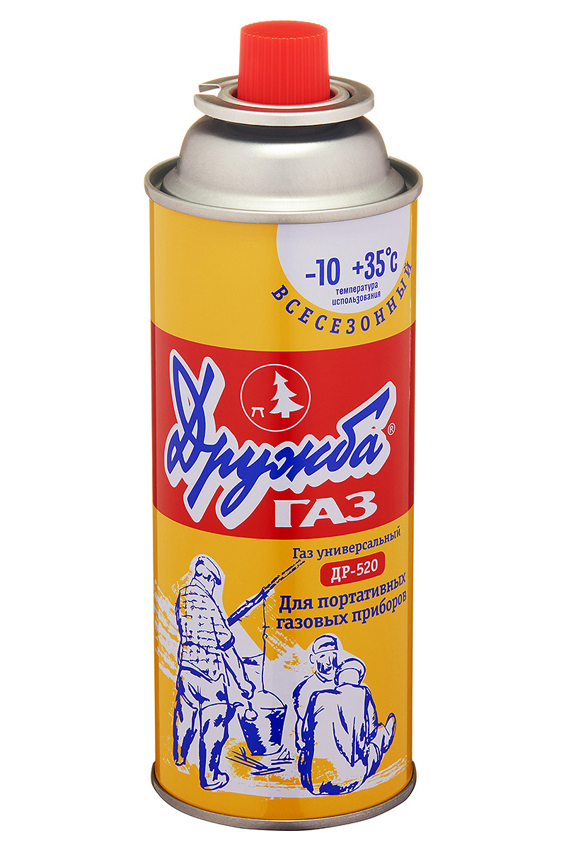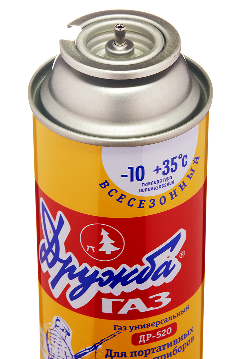 Одноразовый газовый баллон для портативных газовых приборов с клапаном цангового типа. Газовая смесь: изобутан, бутан, пропан (марка ПБТ).