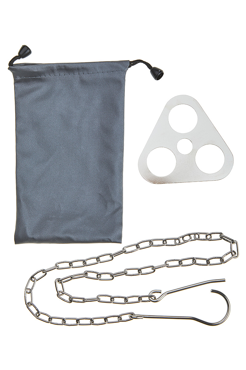 Фиксатор костровой походный торговой марки «Дружба» (ДК-595) предназначен для подвешивания котелков и другой походной посуды над костром. В фиксатор вставляются три ножки (в комплект не входят), возможен вариант использования толстых веток или палок, которые можно найти в лесу. Походная посуда подвешивается к фиксатору с помощью цепочки и крючка. Фиксатор выполнен из высококачественной нержавеющей стали толщиной 3 мм, длинная цепочка (1,2 м) позволяет с лёгкостью настроить необходимую высоту посуды над костром. Комплектуется удобным тканевым чехлом для транспортировки и хранения.