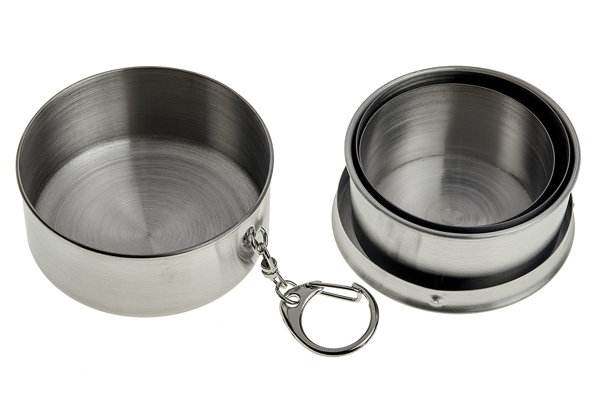 Легкий и компактный складной стакан торговой марки «Дружба» (ДК-555) предназначен для употребления холодных и горячих напитков в походе, в поездке, на пикнике. Благодаря складной конструкции стакан превращается в небольшой стальной коробок, который удобно положить в рюкзак, бардачок или даже в карман. Стакан изготовлен из высококачественной пищевой нержавеющей стали, имеет малый вес и высокую прочность, легко моется, не выделяет токсичных веществ. Оснащен кольцом-карабином для переноски и хранения.