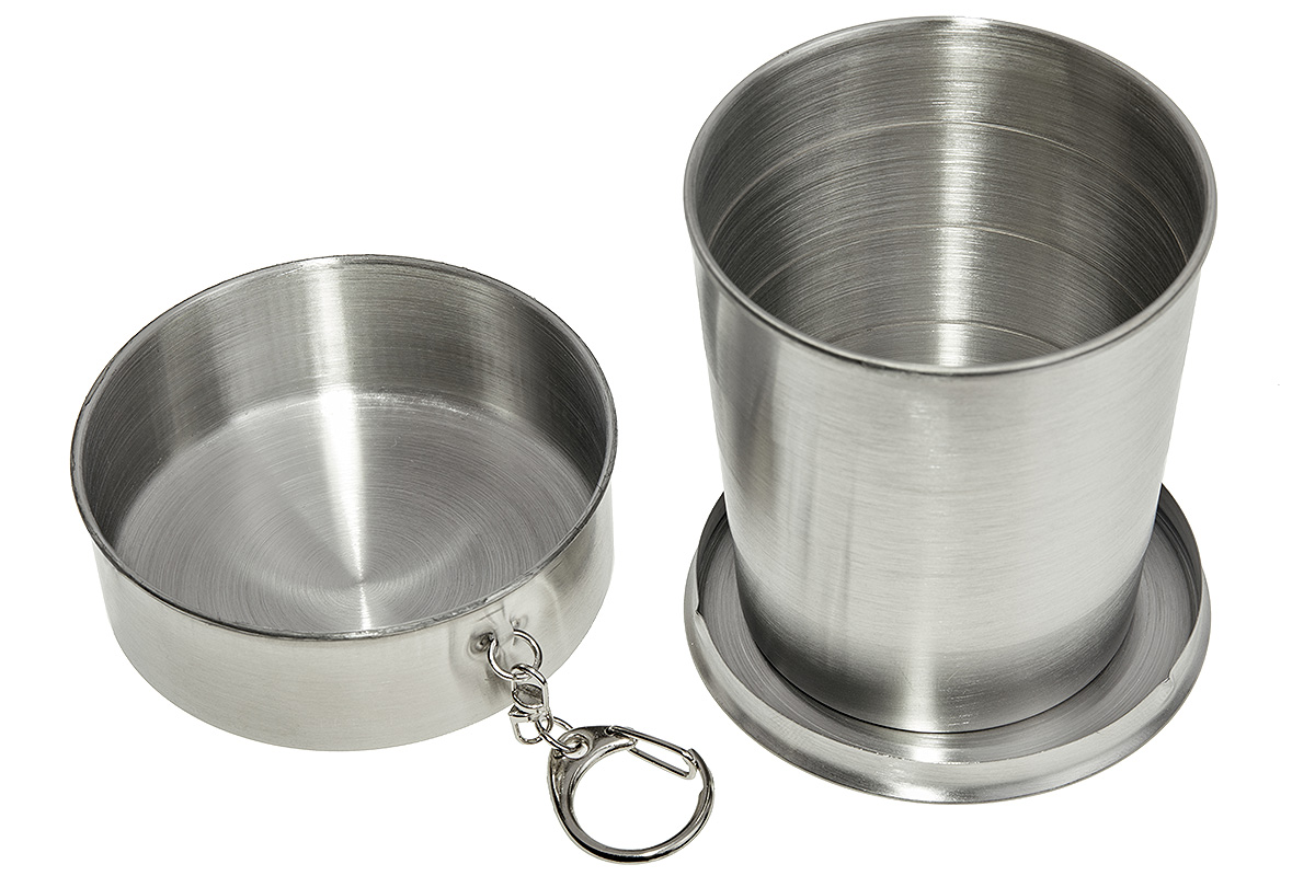 Легкий и компактный складной стакан торговой марки «Дружба» (ДК-557) предназначен для употребления холодных и горячих напитков в походе, в поездке, на пикнике. Благодаря складной конструкции стакан превращается в небольшой стальной коробок, который удобно положить в рюкзак, бардачок или даже в карман. Стакан изготовлен из высококачественной пищевой нержавеющей стали, имеет малый вес и высокую прочность, легко моется, не выделяет токсичных веществ. Оснащен кольцом-карабином для переноски и хранения.
