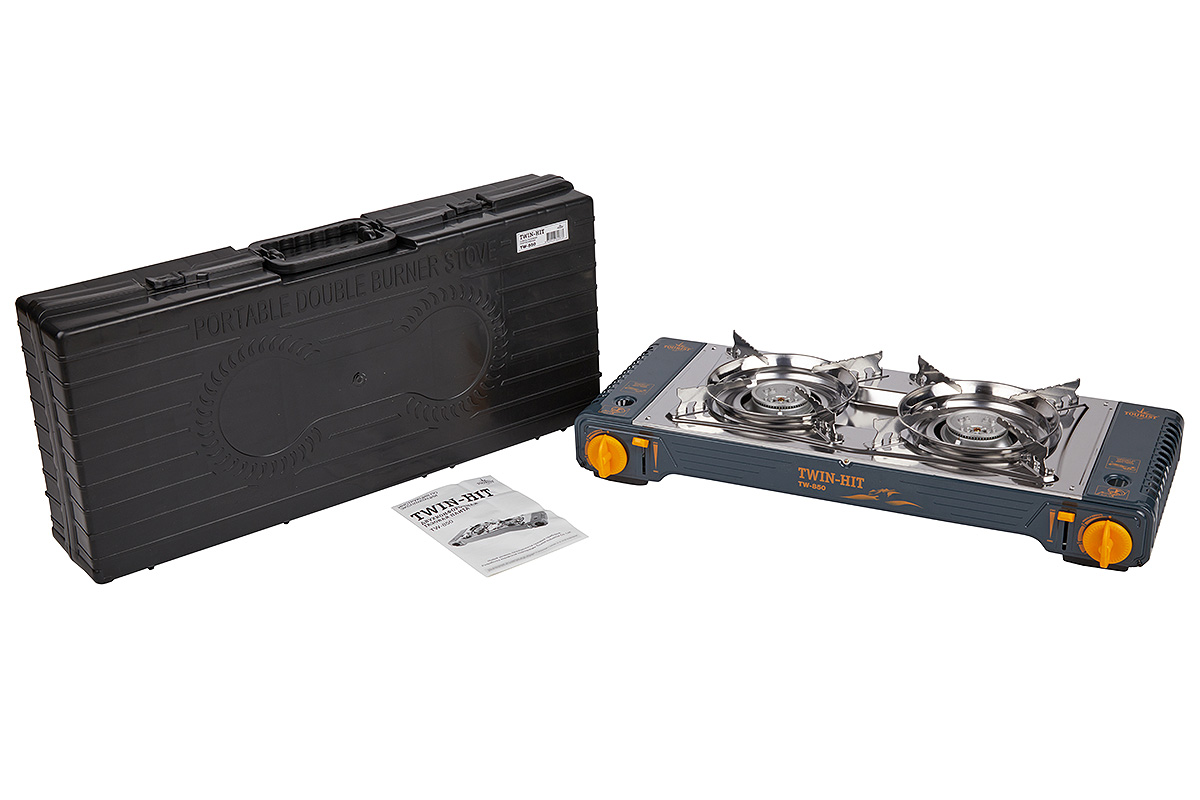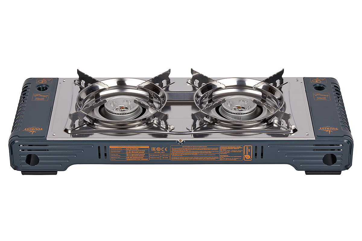 Двухконфорочная газовая плита высокой мощности идеально подходит для большой компании и для любителей много готовить. Сочетает в себе возможность работы как от стандартных одноразовых газовых баллонов, которые размещаются внутри плиты, так и от бытовых баллонов объёмом 5–50 литров, которые подсоединяются к плите шлангом. Плита оснащена самым большим среди аналогов ветрозащитным экраном, что позволяет значительно экономить газовую смесь и повышает безопасность устройства. Транспортировка и переноска плиты осуществляется в удобном пластиковом кейсе. Шланг, хомут и редуктор понижающего давления в комплект не входят.
