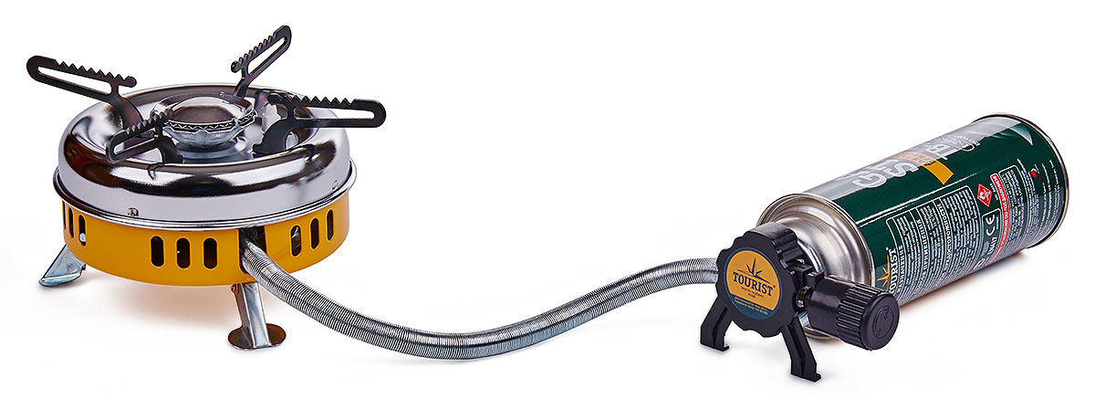 Выносной шланг можно подключить к некоторым видам газовых обогревателей, плит, ламп и горелок. Основное его назначение – отдаление газового баллона от прибора. Это существенно повышает безопасность использования газового оборудования. Также данная опция пригодится в морозную погоду, когда газ в баллоне замерзает, и устройство перестает нормально работать – в этом случае газовый баллон можно поместить в спальный мешок или в палатку для согревания газовой смеси. Максимальная длина выносного шланга – 35 см.