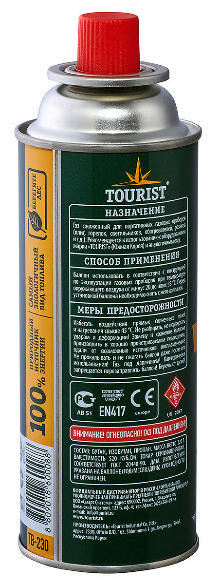 Одноразовый газовый баллон цангового типа для портативных газовых приборов. Изготовлен в Южной Корее. Газовая смесь: бутан, изобутан, пропан (высокопроизводительное всесезонное соотношение).